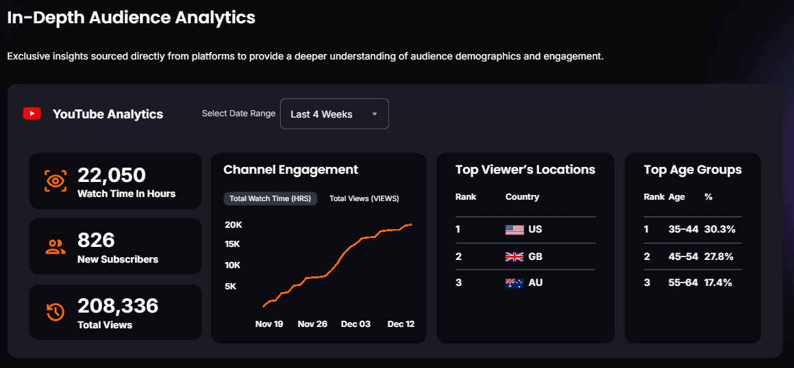 - Analytics Tools: Lever.io incorporates social metrics, track trending content, and KOL performance tracking help you identify influential voices based on real-time data, not only YouTube channels' follower counts.