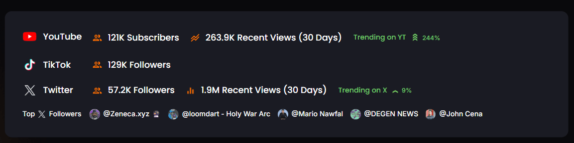 - Trending: Find the audiences that have been growing month-over-month. Creators that consistently build their core following are also some of the creators building the most trust in the ecosystem.